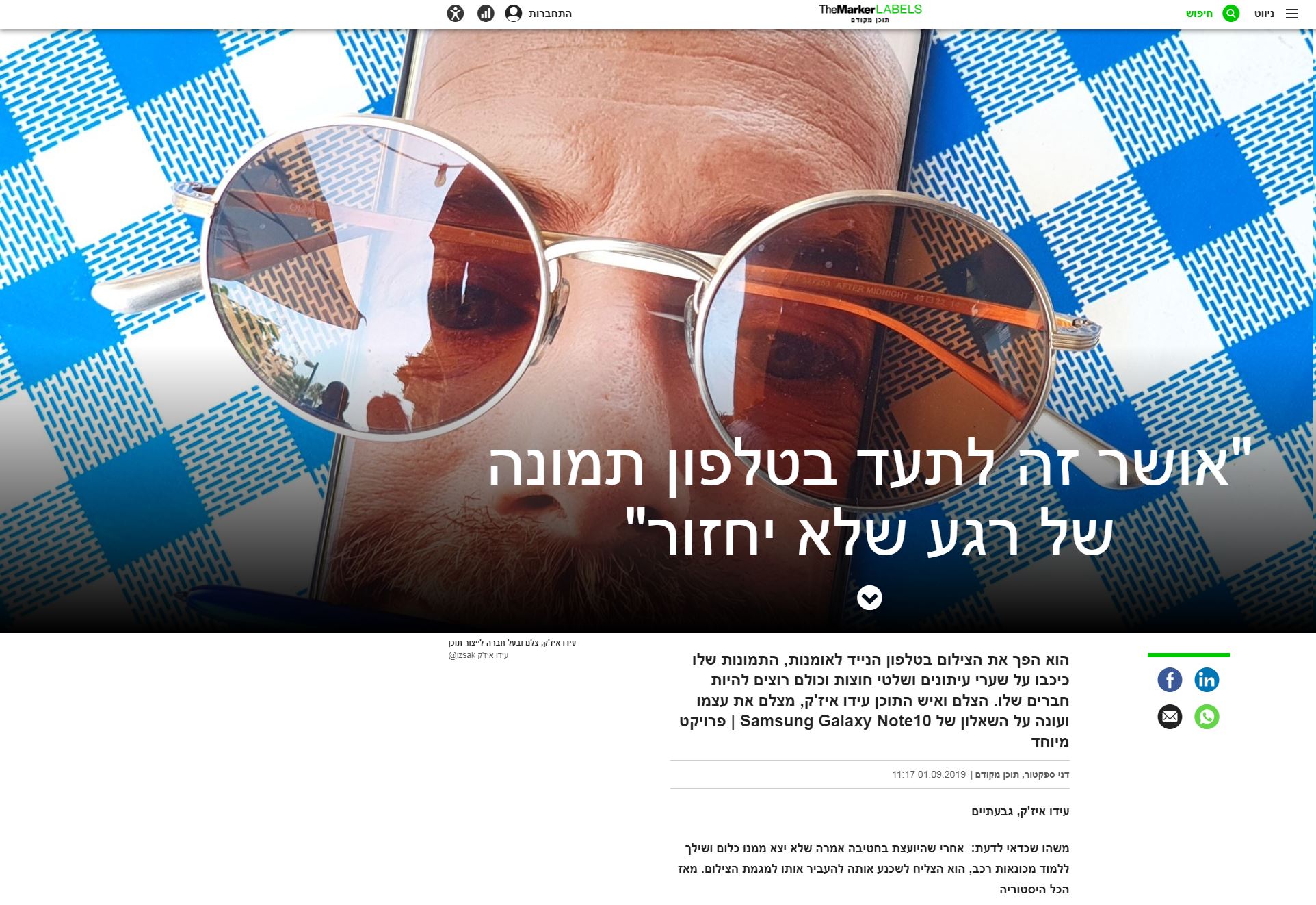 The Marker: "אושר זה לתעד בטלפון תמונה של רגע שלא יחזור"